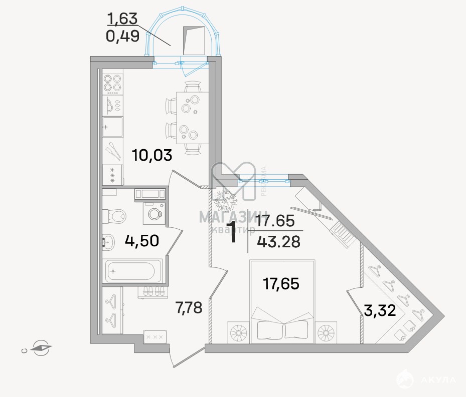 - 43 м²