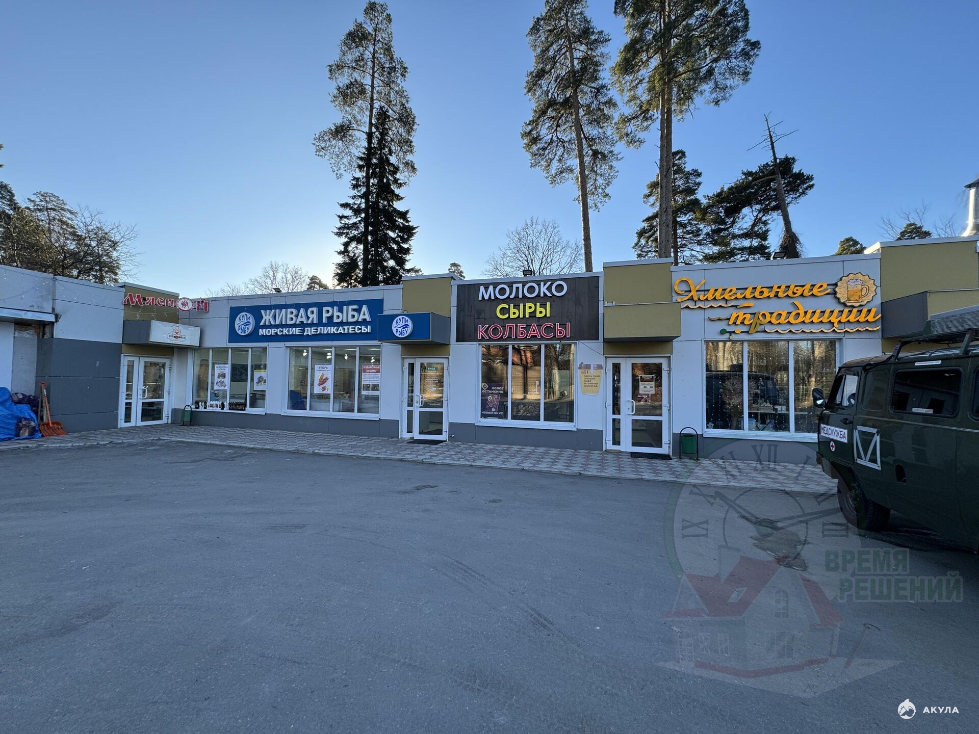 Буквально через дорогу - продуктовые фермерский магазины: Овощи, Хлеб, Мясо, Рыба, Грузинская кухня.