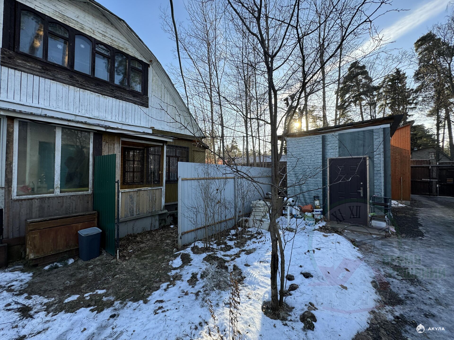 Электроснабжение 5 КВт (можно увеличить), на участок заведен газ.главное преимущество можно построить еще небольшой современный дом.