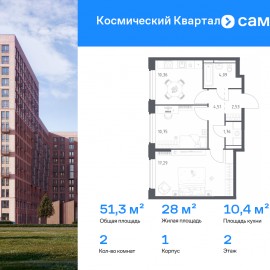 Строим кварталы для жизни с заботой о будущем. Предлагается 2-комнатная квартира комфорт-класса 51, 29 кв.м в корпусе 1 на 2 этаже, в ЖК «Космический Квартал» Квартира с чистовой отделкой. Доступность дополнительных опций уточняйте у застройщика. Приобрести квартиру возможно...