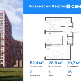 Строим кварталы для жизни с заботой о будущем. Предлагается 2-комнатная квартира комфорт-класса 52, 39 кв.м в корпусе 1 на 16 этаже, в ЖК «Космический Квартал» Квартира с чистовой отделкой. Доступность дополнительных опций уточняйте у застройщика. Приобрести квартиру возможно...