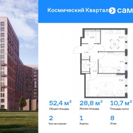 Строим кварталы для жизни с заботой о будущем. Предлагается 2-комнатная квартира комфорт-класса 52, 39 кв.м в корпусе 1 на 8 этаже, в ЖК «Космический Квартал» Квартира с чистовой отделкой. Доступность дополнительных опций уточняйте у застройщика. Приобрести квартиру возможно...