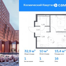 Строим кварталы для жизни с заботой о будущем. Предлагается 1-комнатная квартира комфорт-класса 32, 93 кв.м в корпусе 1 на 16 этаже, в ЖК «Космический Квартал» Квартира с чистовой отделкой. Доступность дополнительных опций уточняйте у застройщика. Приобрести квартиру возможно...