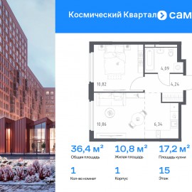 Строим кварталы для жизни с заботой о будущем. Предлагается 1-комнатная квартира комфорт-класса 36, 86 кв.м в корпусе 1 на 9 этаже, в ЖК «Космический Квартал» Квартира с чистовой отделкой. Доступность дополнительных опций уточняйте у застройщика. Приобрести квартиру возможно...