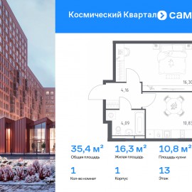Строим кварталы для жизни с заботой о будущем. Предлагается 1-комнатная квартира комфорт-класса 35, 38 кв.м в корпусе 1 на 13 этаже, в ЖК «Космический Квартал» Квартира с чистовой отделкой. Доступность дополнительных опций уточняйте у застройщика. Приобрести квартиру возможно...