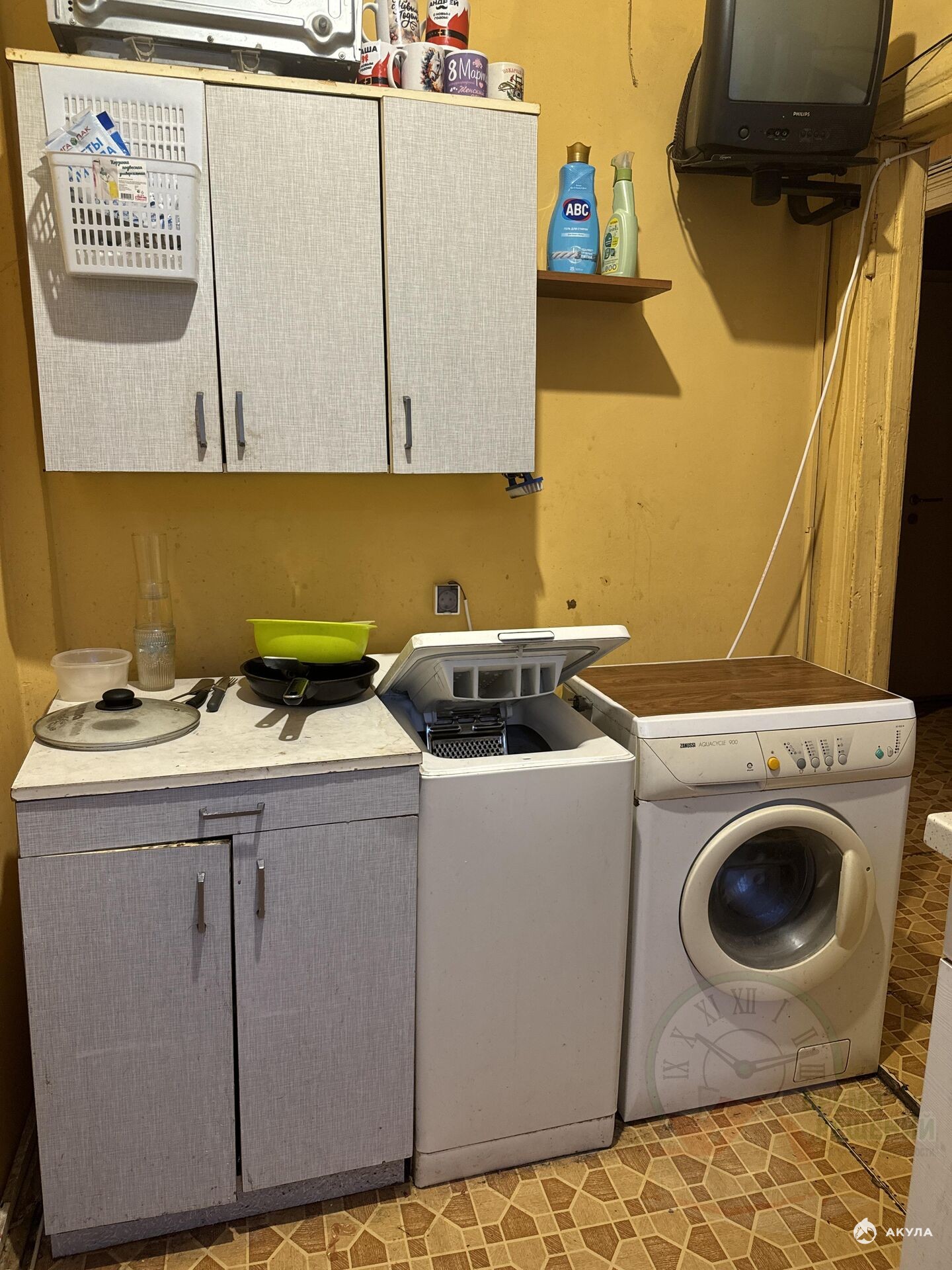 3-й этаж тёплого кирпичного дома. Горячая вода, душ, туалет, кухня, стиральная машина.